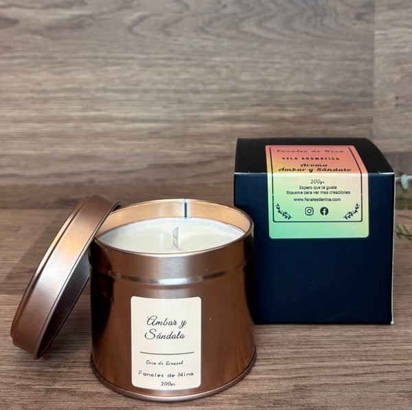 Pensé en la cera de girasol y el pabilo de algodón para que la llama sea suave y el aroma se extienda con naturalidad. Su lata sobria y elegante la hace perfecta para esos momentos en los que solo quieres sentirte en casa.