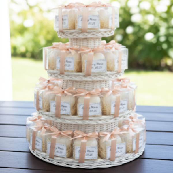 Para que se adapten a tu estilo, tienes dos opciones de empaque: la delicada cajita de PVC o el romántico pomo de tul, perfectas para que tus invitados se lleven un recuerdo precioso de tu evento. El pedido mínimo es de 15 unidades, y los tiempos de producción los ajustamos según tu celebración para que todo llegue a tiempo y sin estrés.