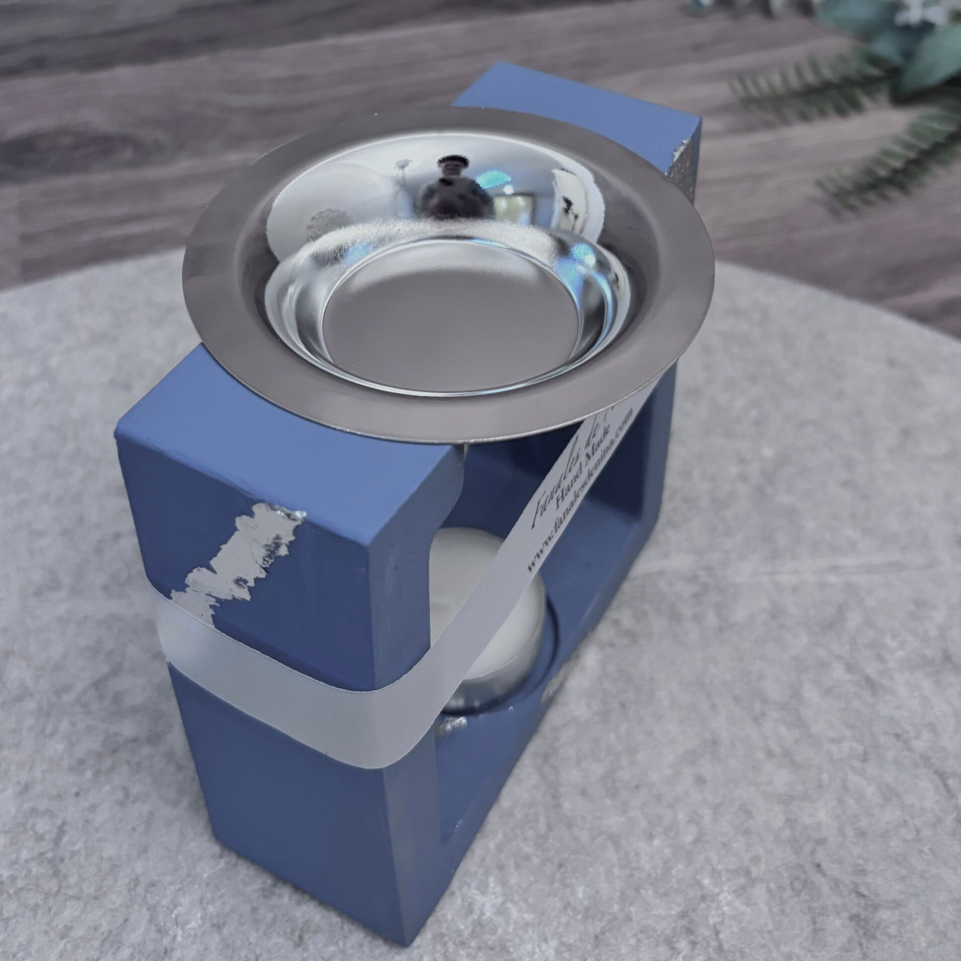 Pebetero artesanal Lumen “Luz de Luna” – azul grisáceo con detalles plateados